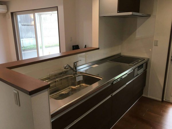 キッチン前の笠木の高さは、通常1㍍くらいが一般的に多いのですが