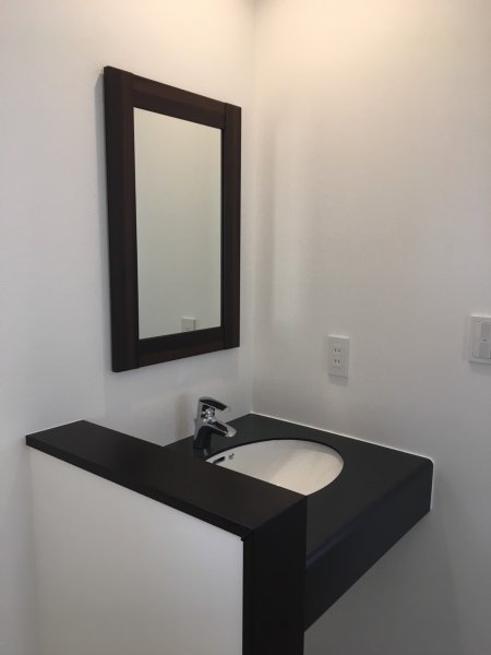こちらの造作洗面台は、アイカのメラミンカウンター、アイカのメラミンフレームを使ったお客様のオリジナルの洗面化粧台です。 カウンター、ボウル、水栓、ミラーを組み合わせ、色から形まで1つ1つ選んでお好みの洗面台につくることができます。 沼津支店 工務 加藤龍之介