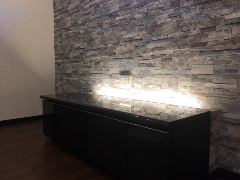 今回は、テレビ台の背後に間接照明を設けました。