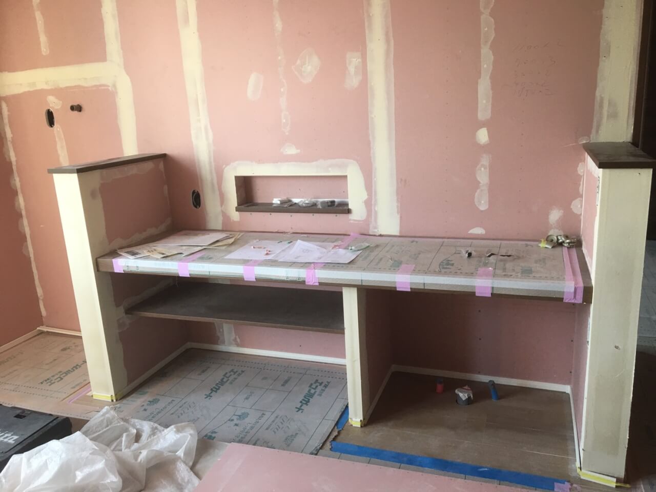 今月より大工さんの工事が終わりクロス工事に入りました。