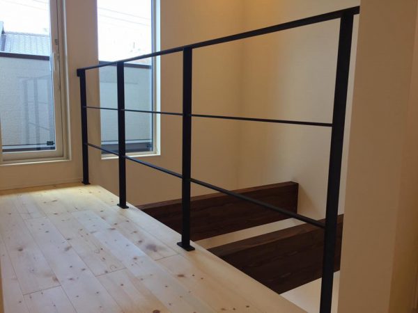 2F吹き抜け手摺はオーダーでフラットバーで製作