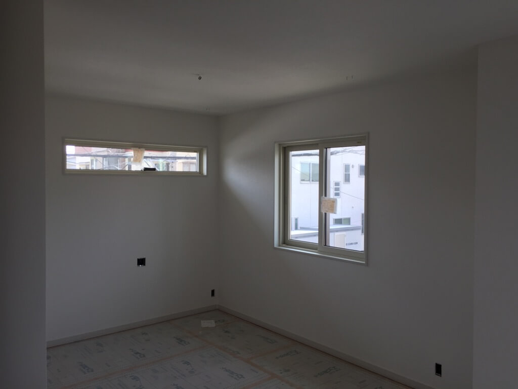 壁紙の施工を行う前には、クロスパテ施工といってプラスターボードとプラスターボードのつなぎ目やプラスターボードを固定しているビス部分の頭の部分を埋める作業を行い、その後にヤスリで平らにしてから壁紙を張り付けていきます!