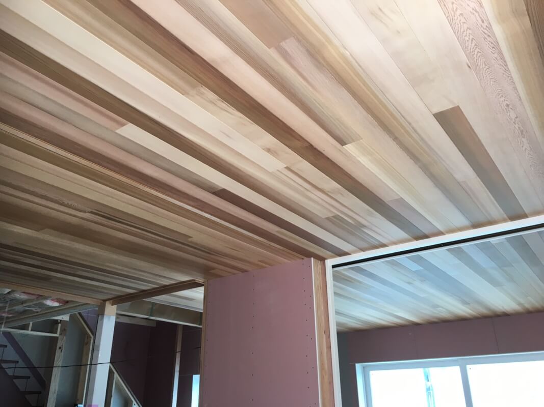 今回は、一階の天井にレッドシダー材を施工したので、写真を撮ってきました。
