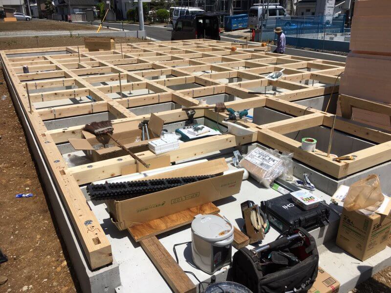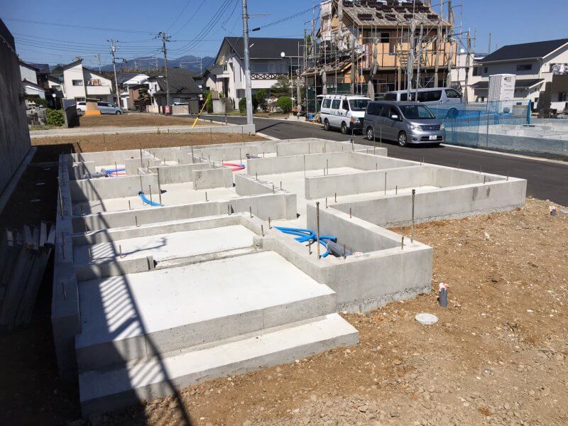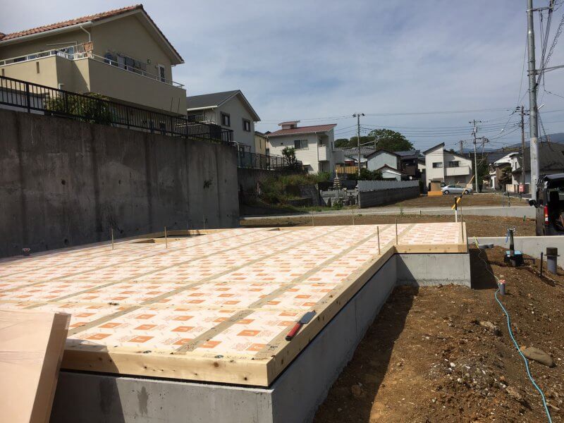 沼津市にて基礎が完成しまして、現在大工さんによる土台敷き、床下断熱材施工が進んでおります。