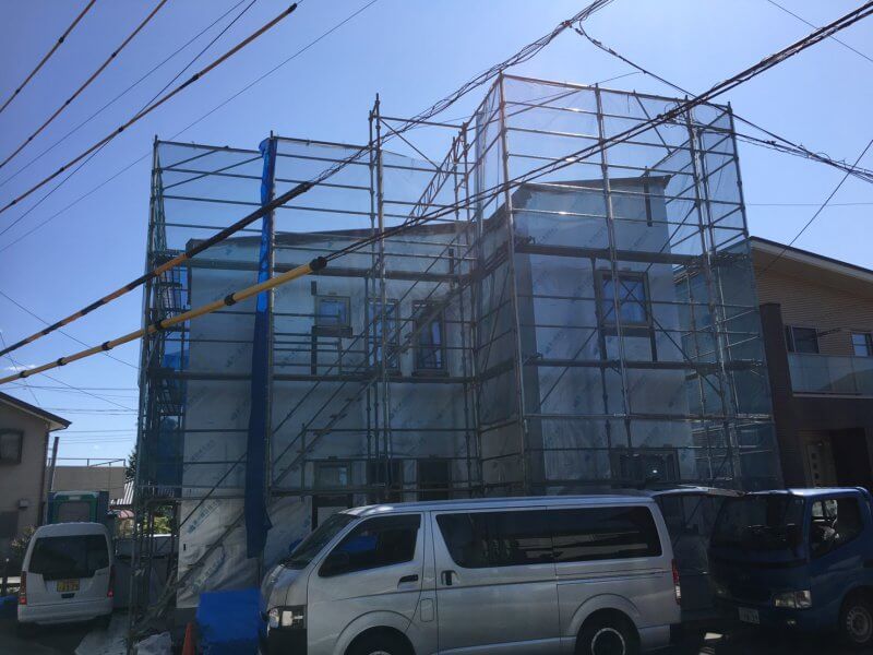 前回、上棟をしました長泉町のお家ですが、サッシの取付が完了し、外部に防水シートの施工が完了しました。