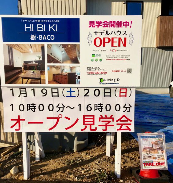 最近とても寒い日が続いてますよね?インフルエンザも流行っています・・・でも【樹・BACOの家】は寒くない!断熱性能が良いおかげで、外の寒さの影響を受けにくい。だから自然と風邪もひきにくいんです!そんなイマドキの家を体感してください。来週の土日はオープン見学会です。まだ体感していないかたはこの機会にぜひ。お楽しみイベントも開催します。詳しくは下から↓↓↓OPEN HOUSEのご案内≫現地には今こんな看板も設置してあります。通勤通学で長泉なめり駅東口をご利用の方は目にしているかも?沼津支店 大石 倭与(おおいし やまと)