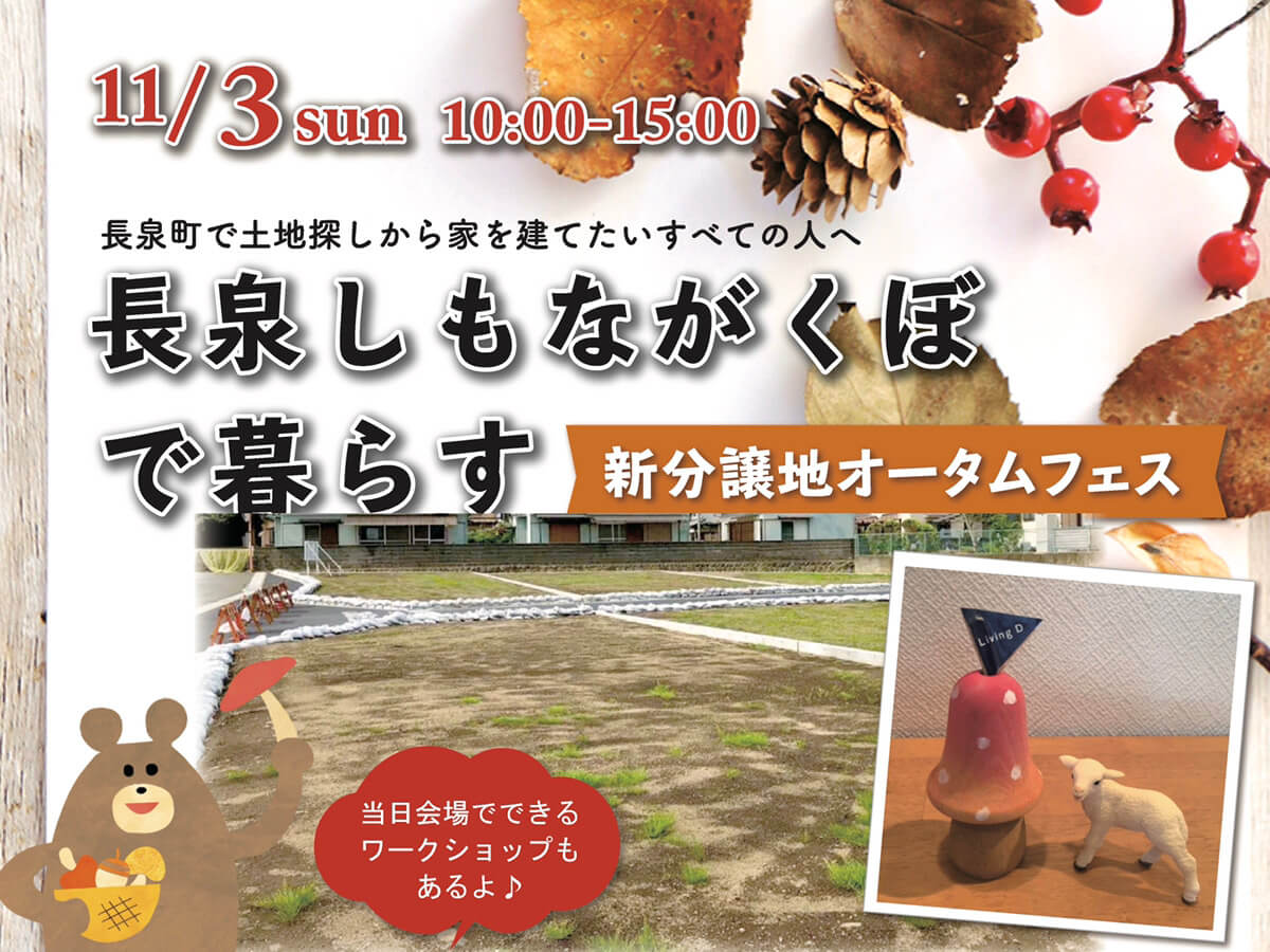 「長泉町で土地探し」と聞くと「物件が少ない」「価格が高い」と思い浮かべる方が多いのでは?そんな長泉町の分譲地で、オータムフェスを開催。長泉町で土地探しから家づくりをするためのコツをご案内します。当日は様々なイベントを企画。木のパーツを使った木工ワークショップ。秋らしく可愛いキノコが作れます^^その他にもお楽しみ企画が満載。詳しくはイベントページをチェック!専用イベントページ≫沼津支店 大石 倭与(おおいし やまと)