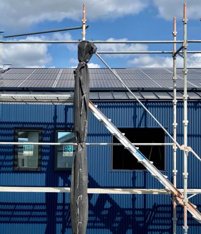 着々と工事が進む新沼津モデルハウス。となりの事務所からは、普段と違った目線で現場が見られます。本日、屋根の上に太陽光パネルが付きました。昔は高価な設備だった太陽光パネルも、近年ではグッとお値段が下がってきましたね。将来を見据え、地球環境を考え電気を使うだけでなく、電気を創る暮らし。そんな選択もアリです。沼津支店 大石沼津支店より程近い大岡会場で今週末見学会が開催されます!こちらもご確認ください♪4/3(土)4(日)沼津市大岡 31坪黒ガルバの家 予約制見学会>>