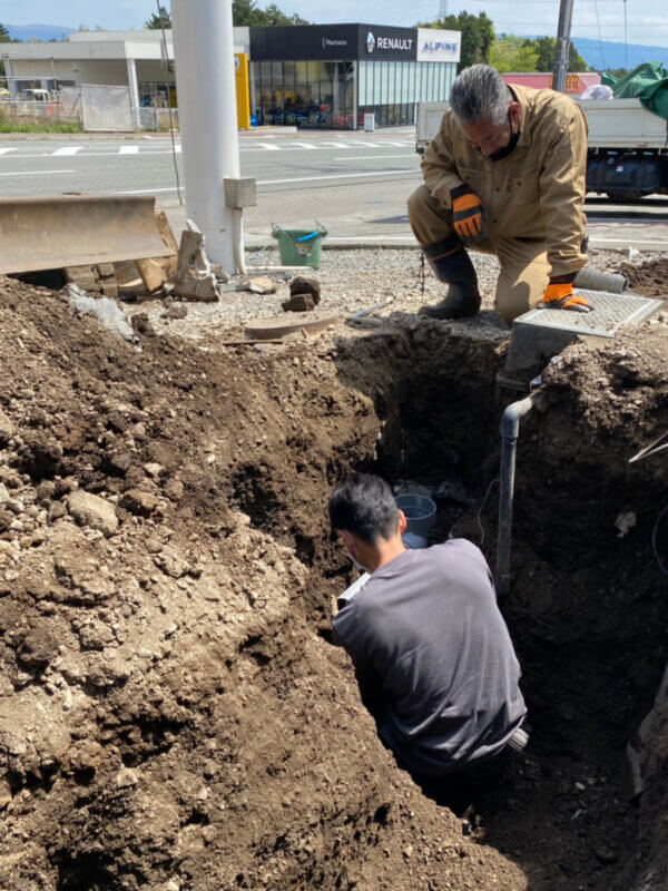 新モデルハウス工事現場では外の穴掘り作業が始まりました。もちろん宝探しをしているわけではありません。建物からの排水を下水に接続する工事をしています。食器を洗った水、顔を洗った水、トイレを流した水などなどこの工事をすることでしっかり外へ流れていきます。いよいよ工事も終盤へ。モデルハウス完成が日に日に近づいています。ワクワクしますね♪沼津支店 大石