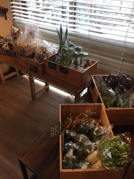 “blueberry”、”YUZUKA”さんのパンや地場野菜、インテリアグリーン、カフェLDKからは焼きおにぎりや豆乳プリン