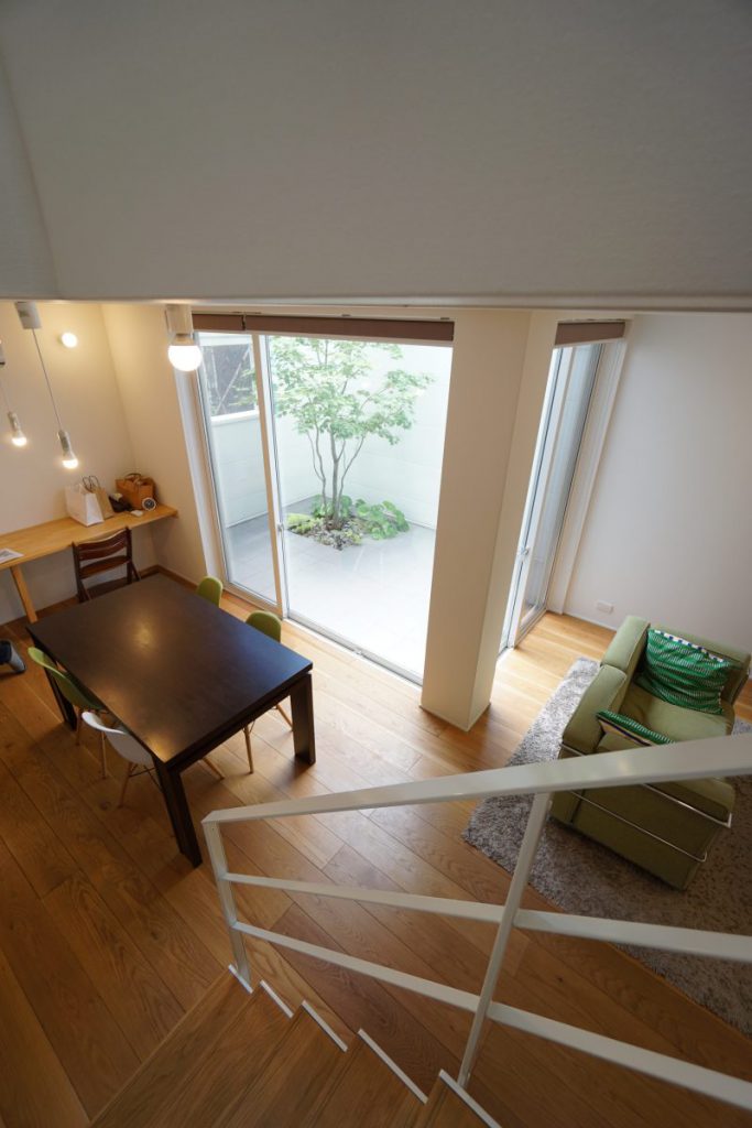 そんなスタイリッシュなF様邸のアクセントとなっているのが、テラス庭と、すのこ床のキャットウォーク。