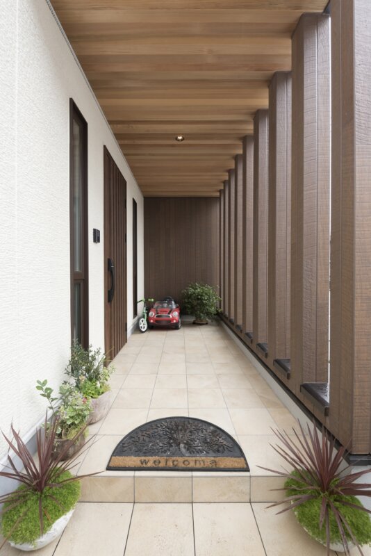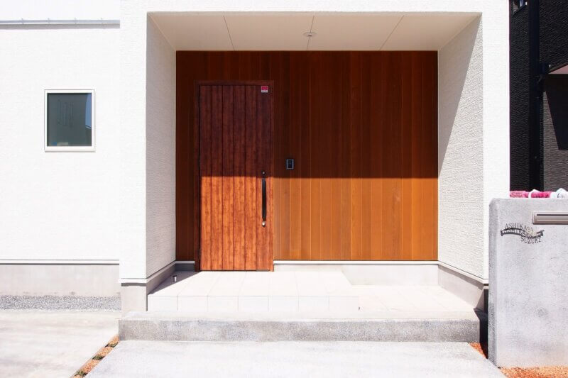 スタイリッシュ!ホワイト外壁×木目がオシャレ、、、、