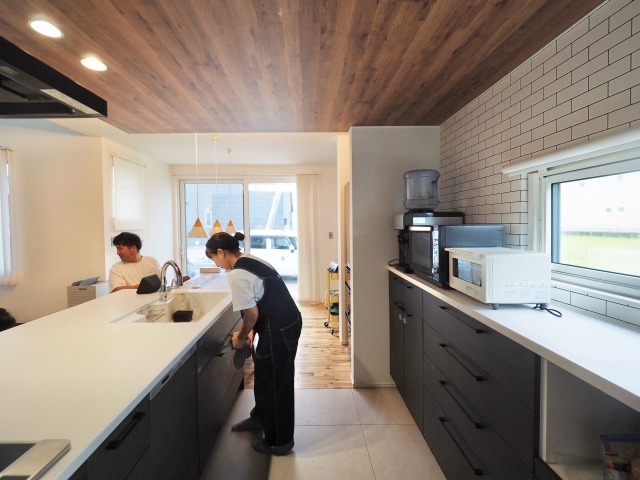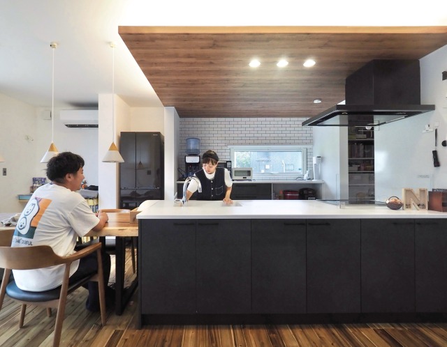 ブラック色が格好良いペニンシュラキッチン。