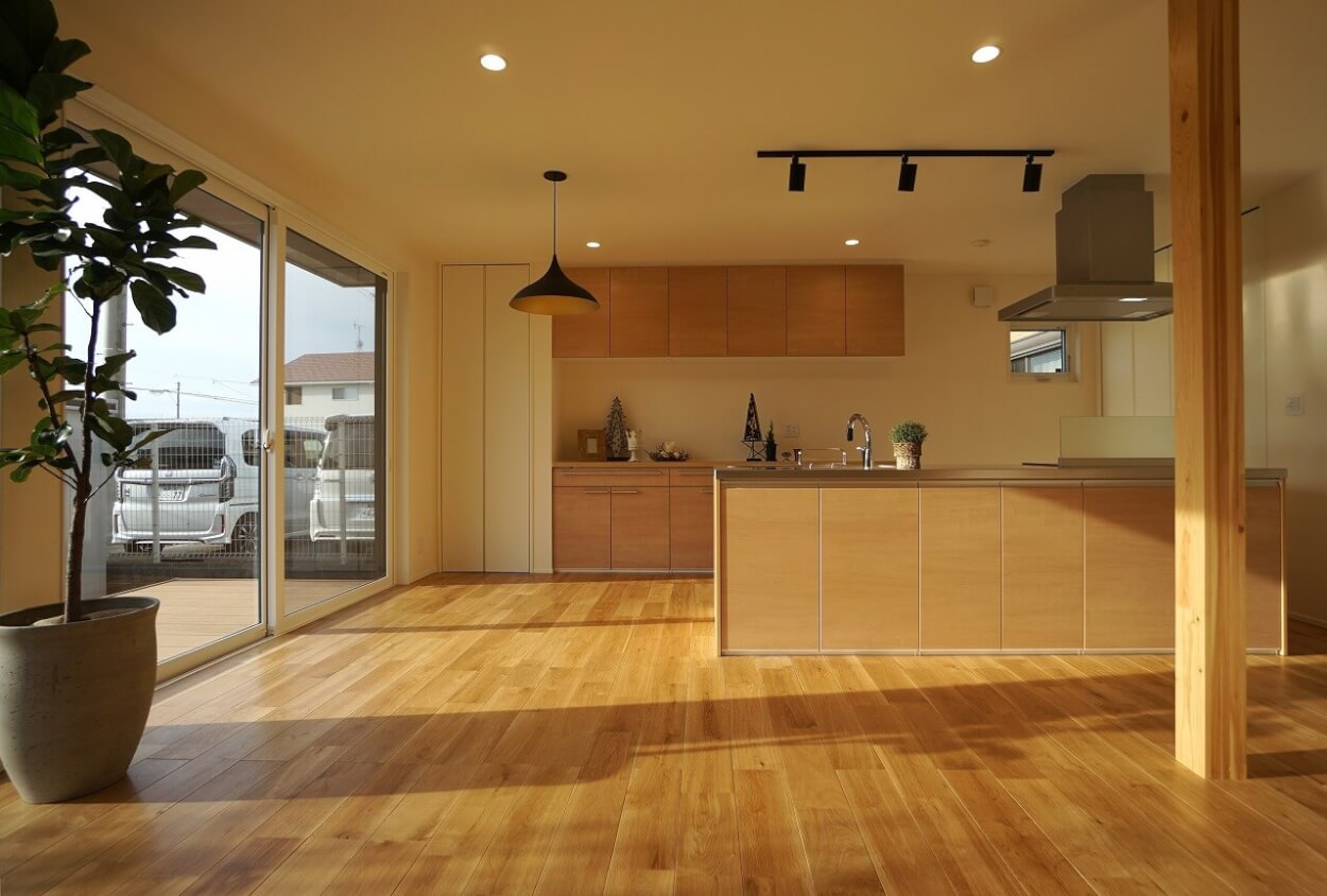 床と天井に木材を使用した自然美溢れるおうち さらにダイニングテーブル