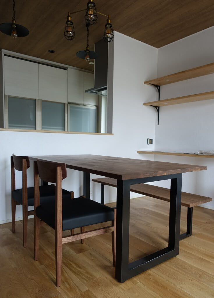 雰囲気ピッタリのウォールナット無垢材のマスターウォールの家具が更に格好良く空間を引き締めてくれました!
