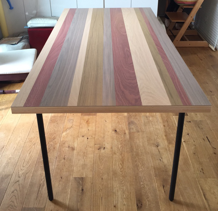 お客様のセレクトは、「プラスワンダー」というブランドのメラミン化粧板を天板に使用し、スマートなデザインの黒のスチール脚を取り付けたセミオーダーのダイニングテーブル!!