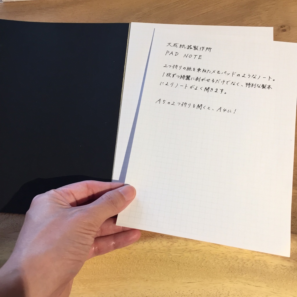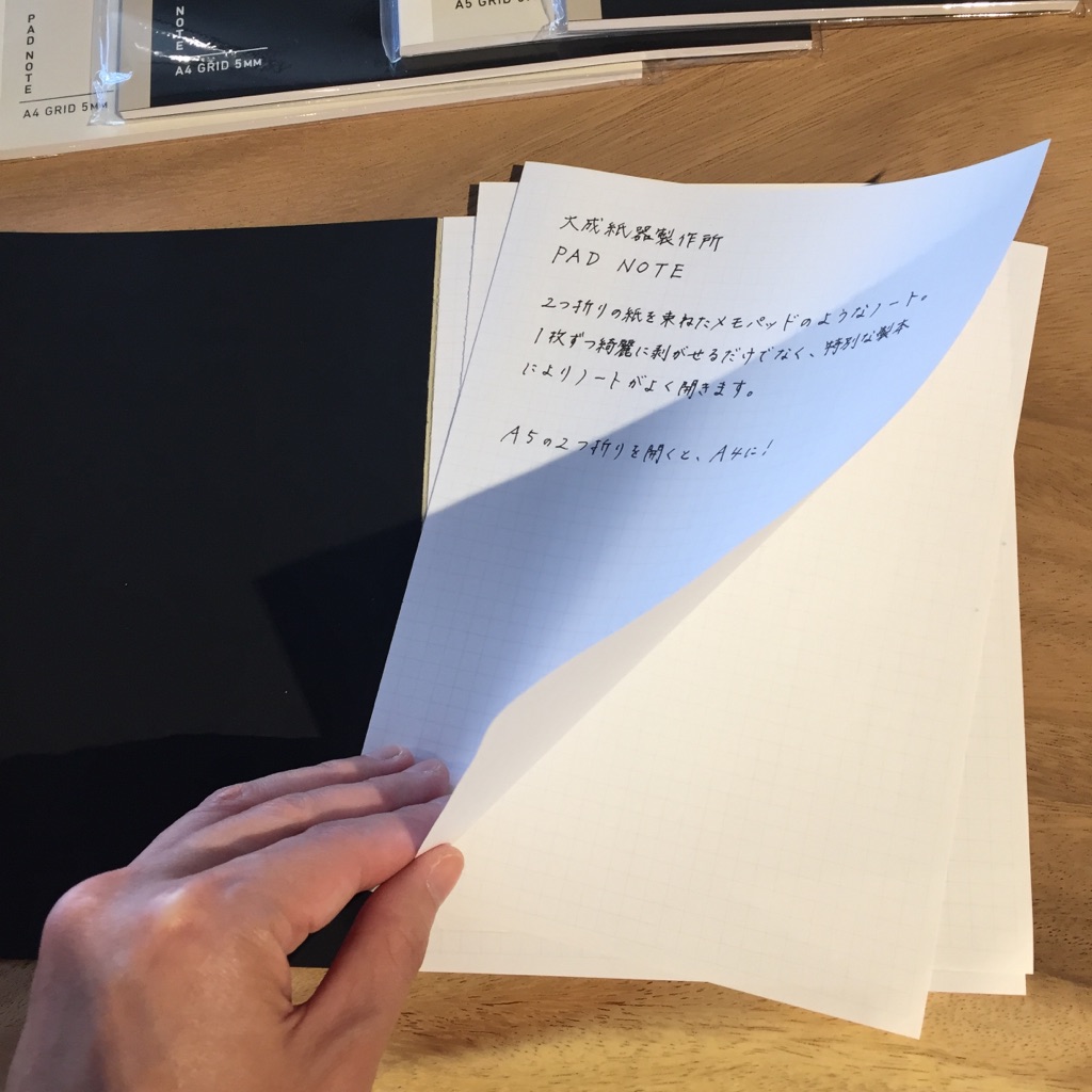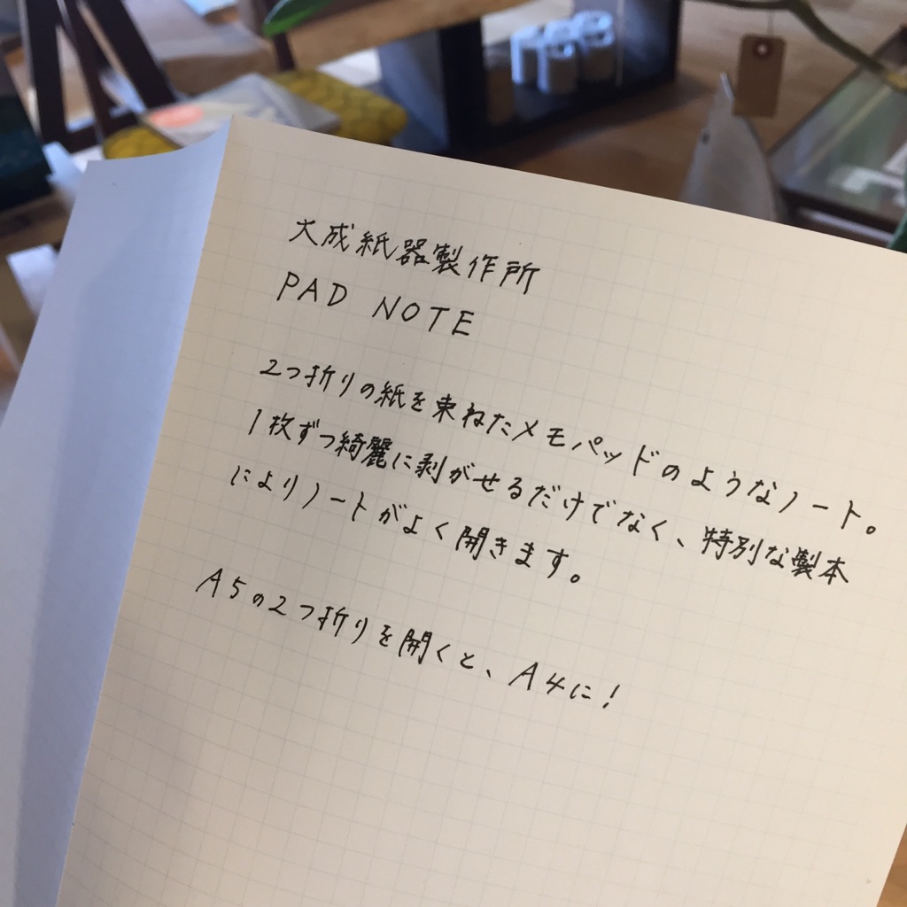 今日ご紹介するのは、2つ折りの紙を束ねたメモパッドのようなノート、その名もPAD NOTE(パッドノート)