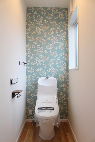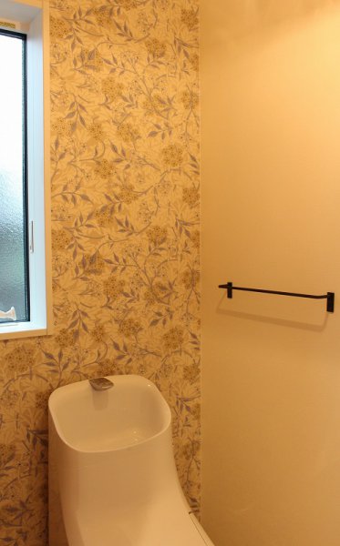 トイレのアクセントに、繊細な色柄の輸入クロスを。