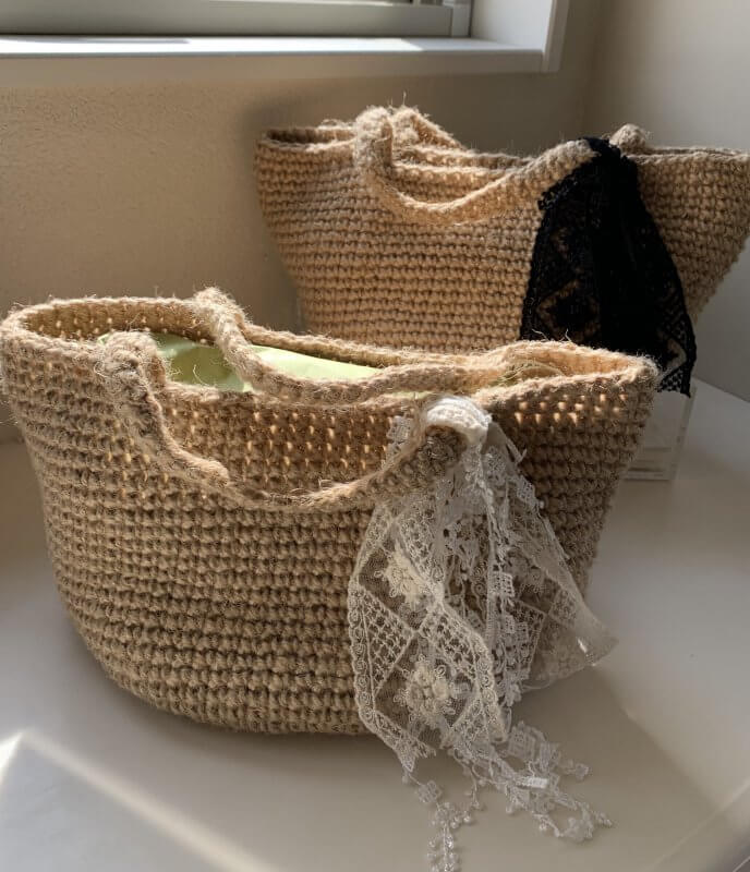 こちらも、ハンドメイドの小ぶりの麻バック。